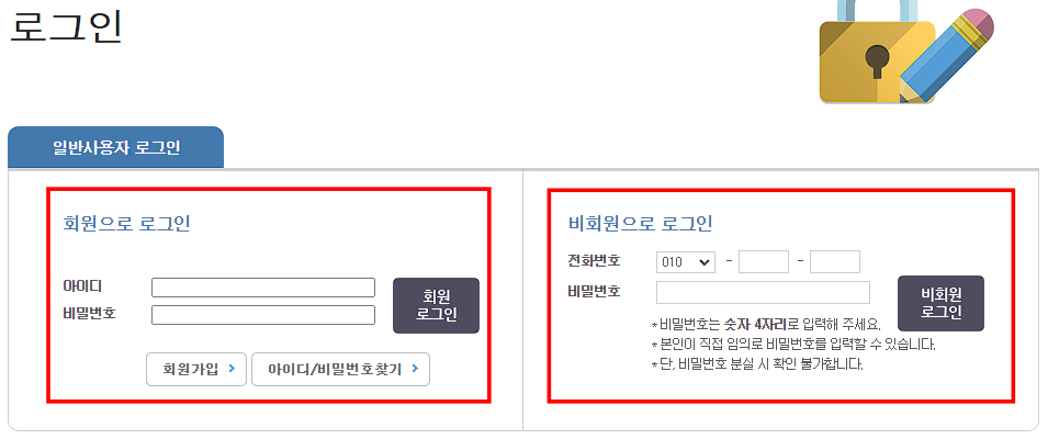 로그인 방법은 두가지있습니다. 회원 or 비회원 으로 로그인 해주세요