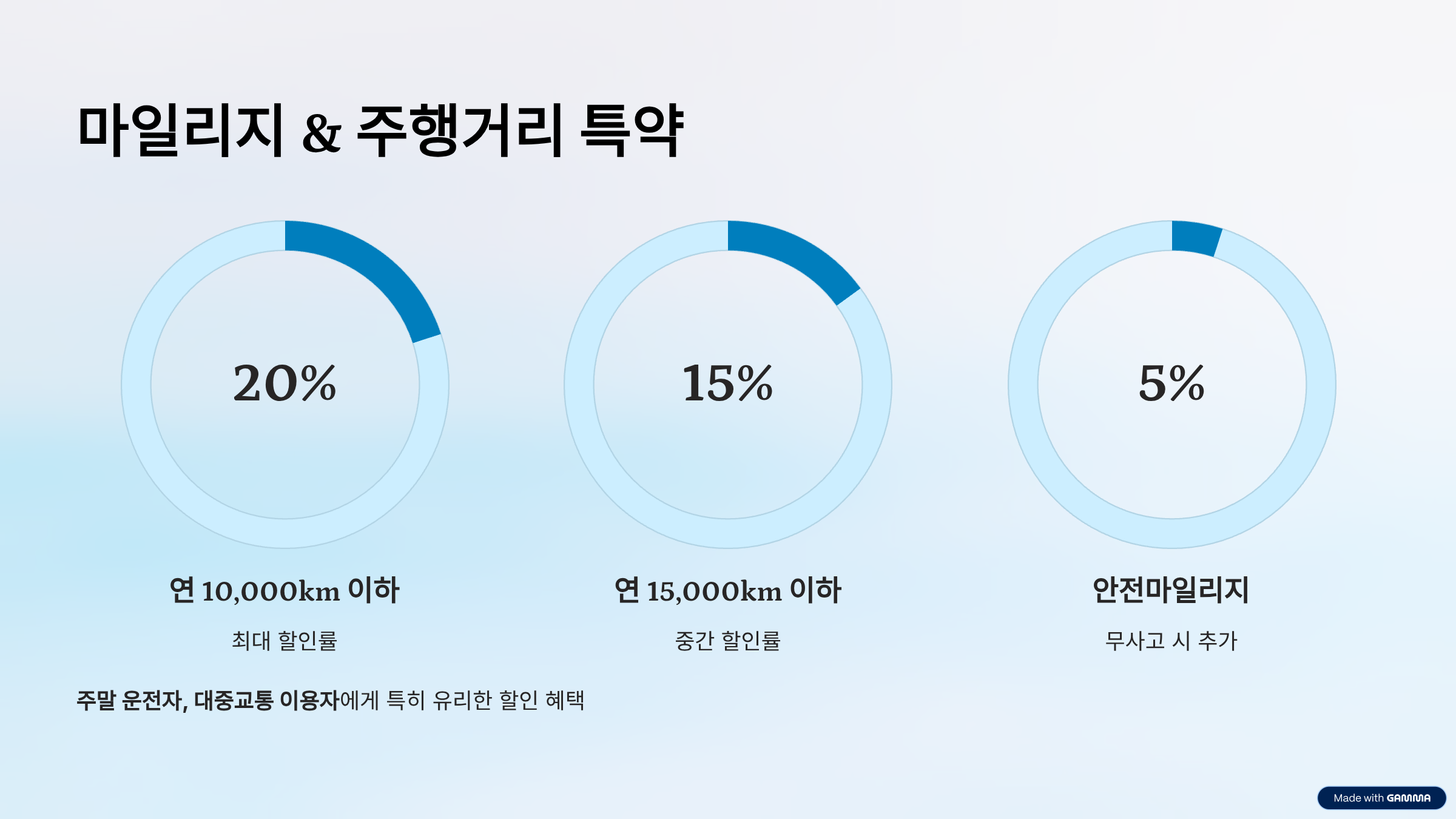 | 마일리지 할인 | 연간 주행거리 제한 | 최대 30% |