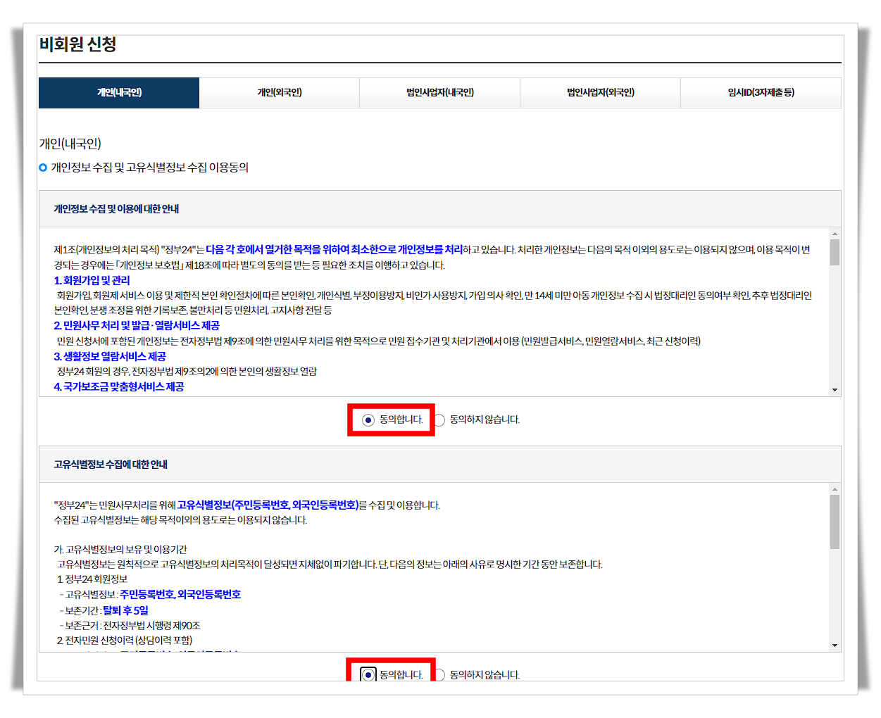 이번엔 비회원신청하기로 진행해보겠습니다.