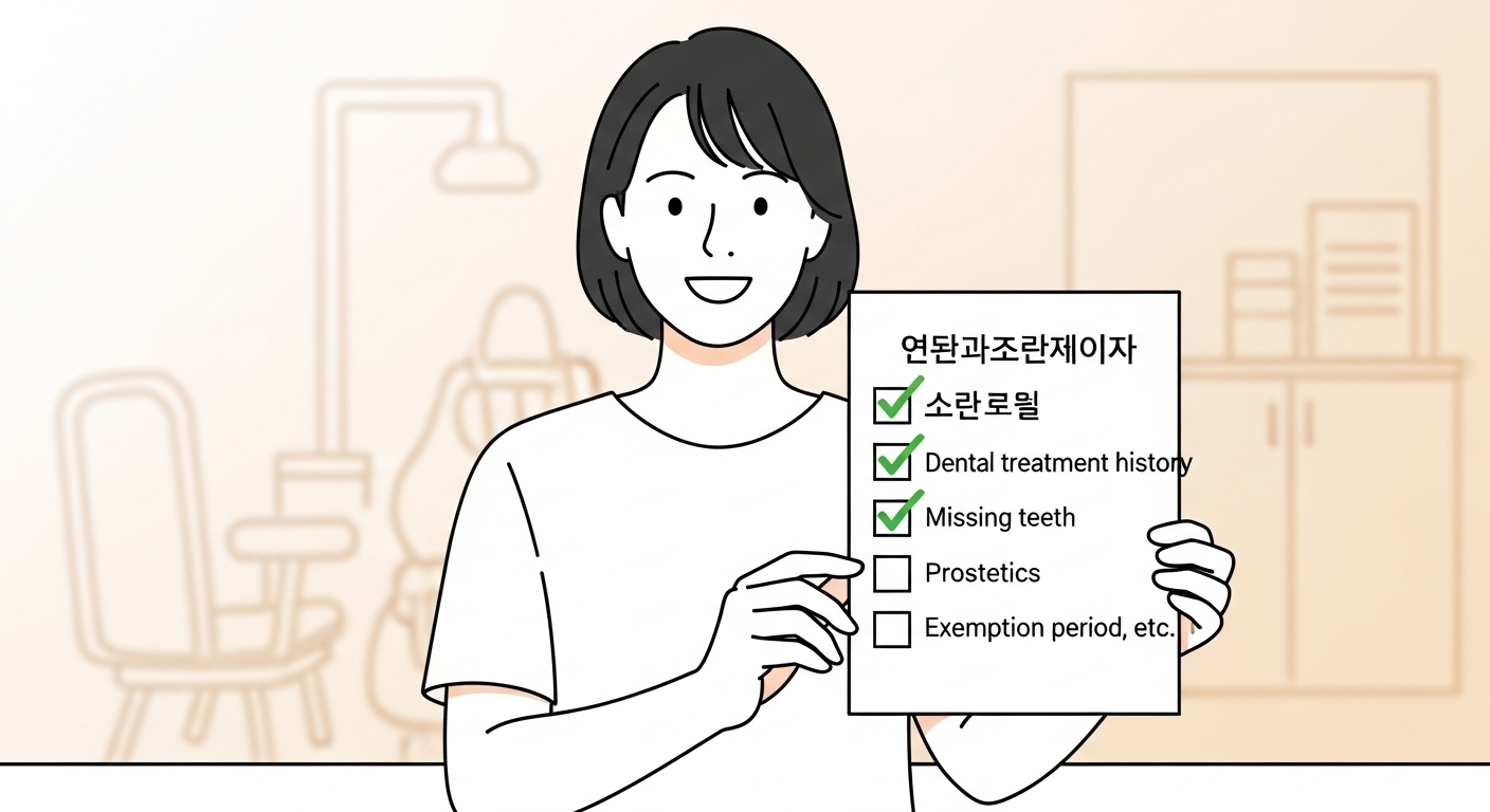 ✅ 최근 1년 내 치과치료 여부: 스케일링 제외, 충치·보철 치료 이력이 있다면 심사에 영향을 줄 수 있어요.